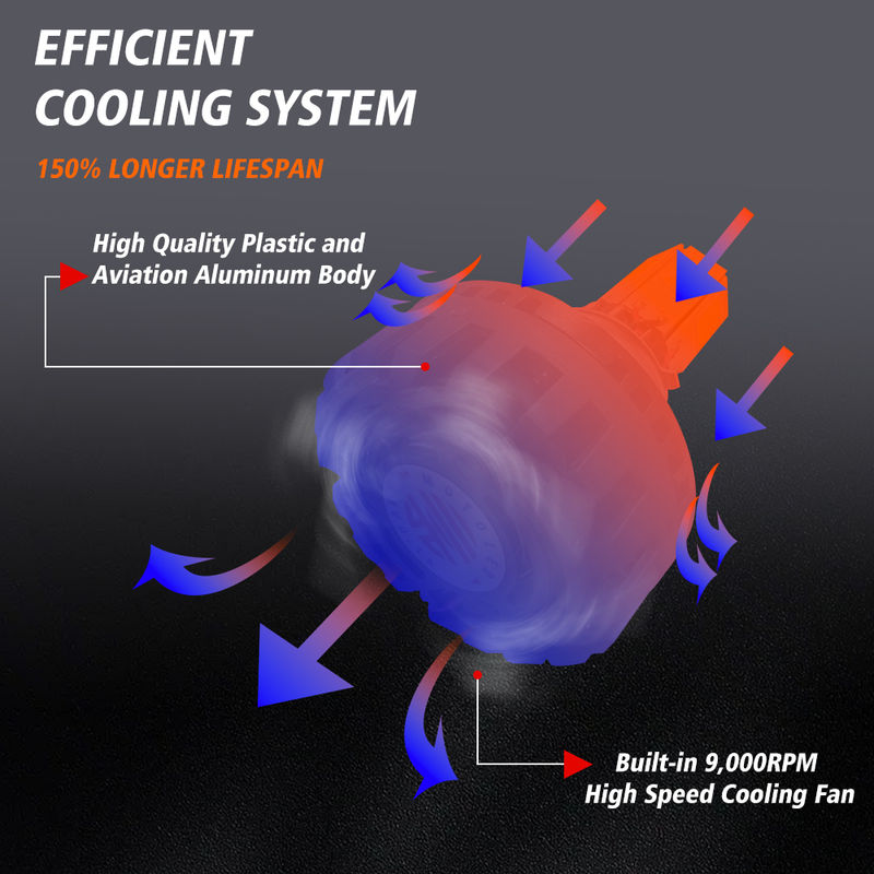 υψηλής ταχύτητας αθόρυβος ανεμιστήρας με 9.000RPM και πτερύγια σχεδιασμό του κέλυφου σχηματίζει ένα αποτελεσματικό σύστημα ψύξης, IP67 αδιάβροχο, πάνω από 50,000