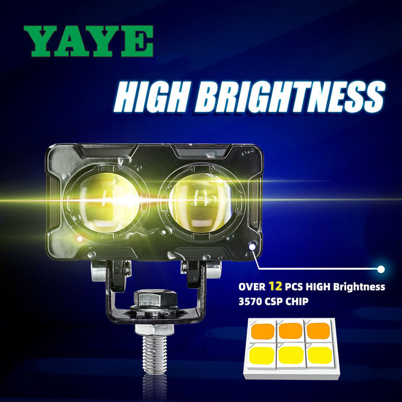 YAYE Φώτα Εξερεύνησης για Μοτοσικλέτα Mini Spot Light LED Διπλού Προβολέα Κίτρινο Λευκό 20W 2000LM 18